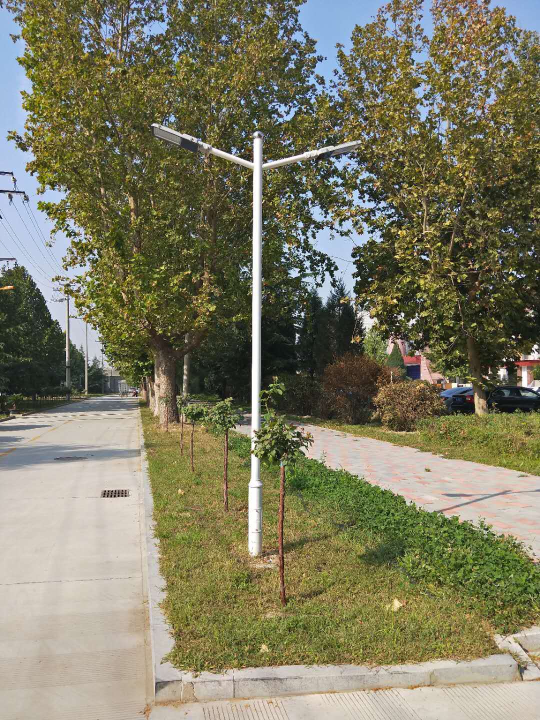 2、 太陽(yáng)能路燈安裝距離:15W,適用于燈桿高度3m-4m;