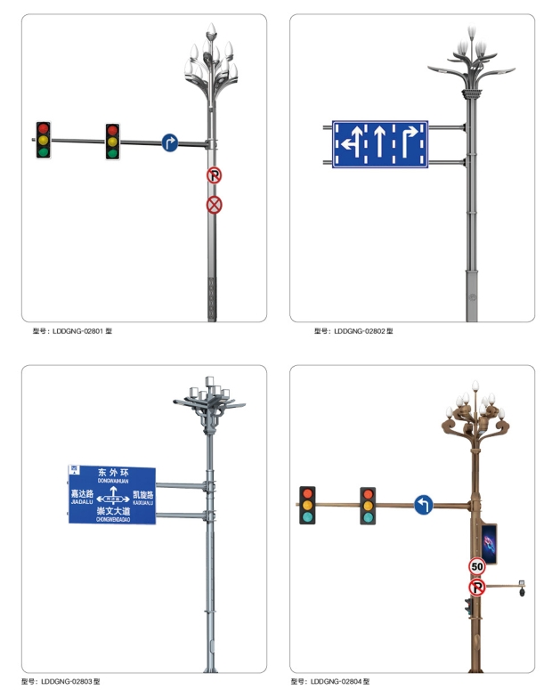 :造型支臂的形式多樣,有單懸臂、雙懸臂、F 型、T 型、Y 型等1。單懸臂適用于道路一側需要設置指示牌的情況;雙懸臂則用于道路較寬、需要在道路兩側同時設置指示牌的場合;F 型、T 型、Y 型等則根據具體的地形和交通需求進行選擇。