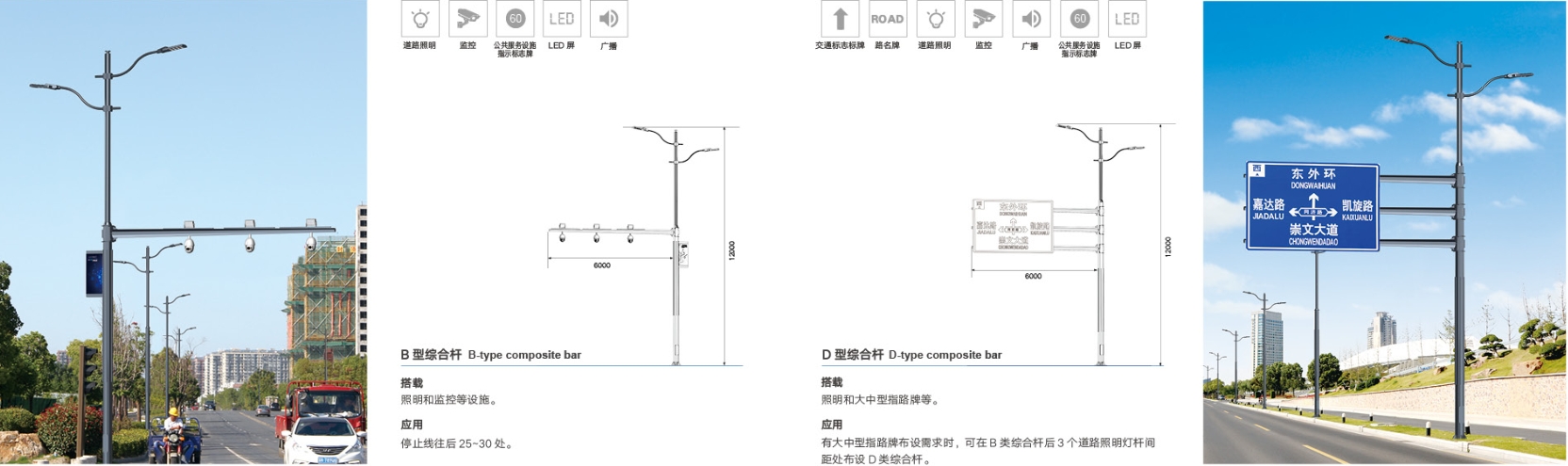 3. 布局形式:采用多桿合一的布局形式,將不同功能的桿件進(jìn)行組合,如路燈桿、交通信號桿、監(jiān)控桿等,以實(shí)現(xiàn)資源的共享和優(yōu)化。